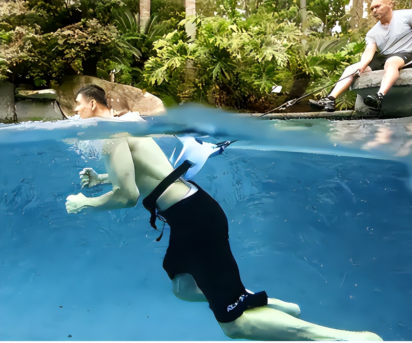 姚明有多猛,看过他打球都知道,健康时期姚明,就是联盟前3中锋。他最大问题就是脆了点,毕竟他这样超模身材,常年又各种比赛,身体想不脆都难。姚明在恢复训练时,他很喜欢在泳池里进行康复训练。这次训练照被拍下来,姚明像灭霸,而一样训练师像“小矮人”。