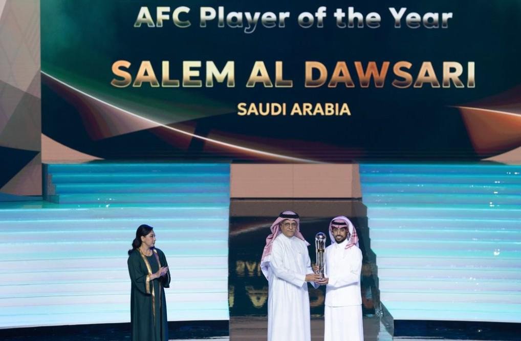 2025年亚足联颁奖典礼在利雅得法赫德国王文化中心举行,沙特球员达瓦萨里与日本球员高桥花分别荣获亚足联年度最佳男、女球员。